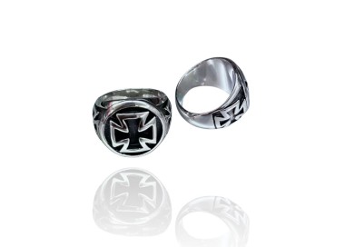 La chevalière Augustin est une pièce de caractère, pensée pour les amateurs de symboles puissants et de bijoux au style affirmé. Réalisée en acier inoxydable argenté, elle se distingue par ses croix gravées contrastant avec un fond noir profond, évoquant des influences celtiques ou l’iconographie de la croix de fer.