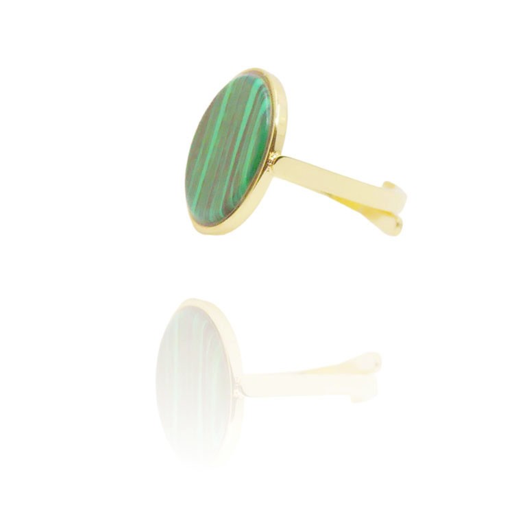 Bague en acier inoxydable doré avec pierre malachite