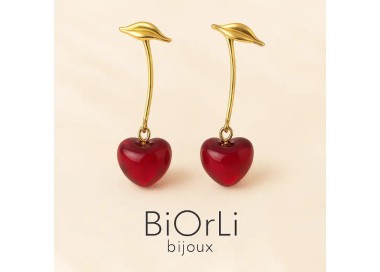 Émiliane – Boucles d’oreilles cerises en acier doré